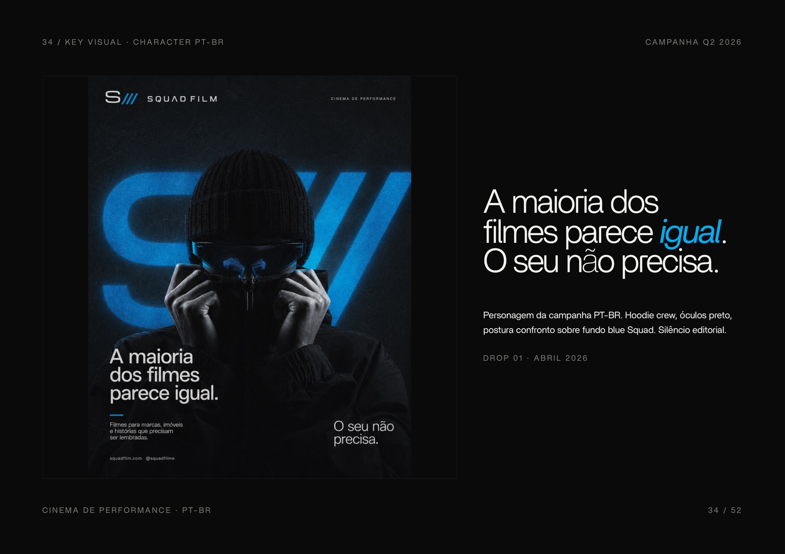 Apresentação completa do rebranding 2026 — manifesto, sistema visual, aplicações em apparel, web, mobile, outdoor e identidade 3D.